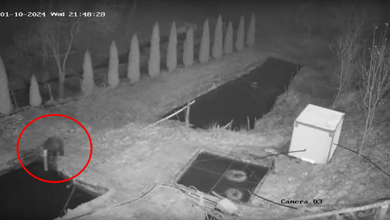 Pentru că este prea cald pentru hibernare, animalul își caută de mâncare. A ajuns la o crescătorie de păstrăvi din comuna Lupșa, în județul Alba.