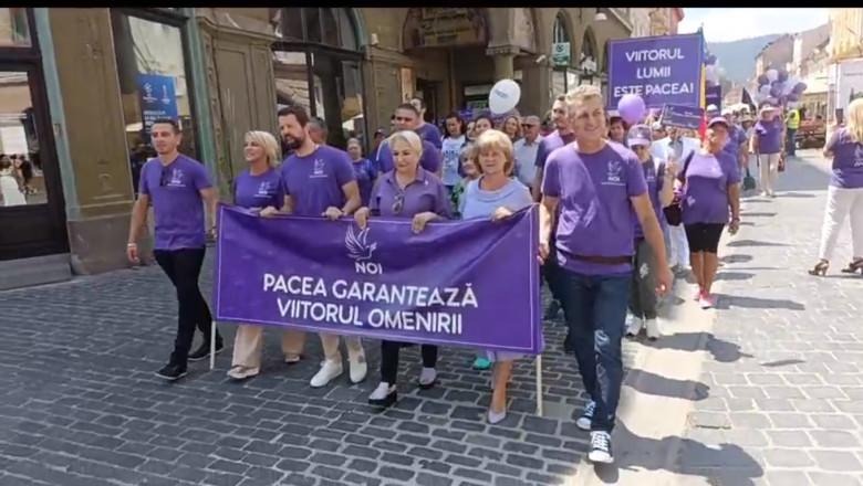 Fostul premier Viorica Dăncilă, proaspăt aleasă președinte al partidului NOI, a organizat mai multe plimbări în orașe precum Brașov, Sibiu sau Cluj, unde a cântat pentru pace, în fruntea unei coloane de aproximativ 50 de persoane îmbrăcate în tricouri mov.