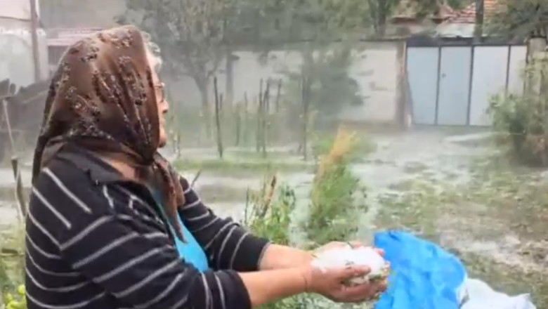 Vijelia a lovit puternic la Răscolești, în județul Mehedinți. Localnicii spun că n-au mai văzut așa ceva în viața lor. Grindina a fost atât de puternică, încât bucățile de gheață au desfrunzit aproape complet copacii.