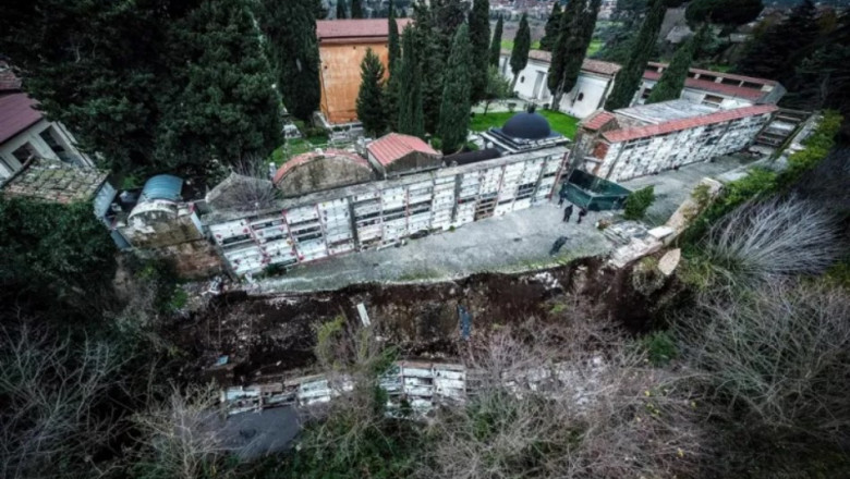 Incidentul s-a petrecut în sudul Italiei, în Sant'Agata de Goti, scrie Cde.news. După ploile torențiale din ultimele zile, o parte a cimitirului s-a prăbușit.